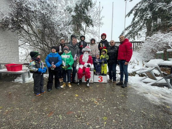 2. Dezember Nikolaustrial im Freizeitzentrum : Es hat ganzen Tag mehr oder weniger stark geschneit, das hat die Teilnehmer aber nicht gestört und alle haben bis zum Schluss mitgemacht. Mit Gulasch und Schweinsbraten haben sie sich von der Anstrengung erholt Der Nikolaus ist wie es sich für das FZZ gehört mit dem Motorrad gekommen, und hat allen Teilnehmern und Helfern sowie den anwesenden Kindern ein Geschenk gebracht. Bei der Siegerehrung war, wie so oft der Bürgermeister und der Ortsvorsteher dabei. Bei Kinderpunsch und Glühwein sind dann auch einige noch etwas in der gut beheizten Kantine sitzen geblieben